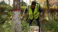 树木刷白“换新衣” 安全防护过暖冬