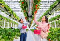 空中草莓红 市民采摘乐