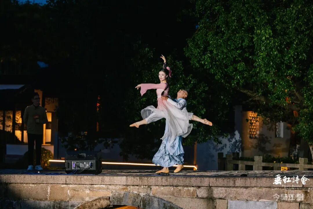 在舞剧里,唐寅的艺术人生获得当代解读;在诗会上,古人的诗句与今人的吟诵隔空对话。这种挖掘超越了简单的考古,是对文化基因的深度解码。“我们希望通过情景还原,让大家真正‘走进’垂虹桥,了解垂虹文化。”“为你读诗”创始人张炫的话,道出了场景活化的核心:“诗会不是单纯的朗诵,而是心灵的相会,是古人与今人、历史与当下的对话。”