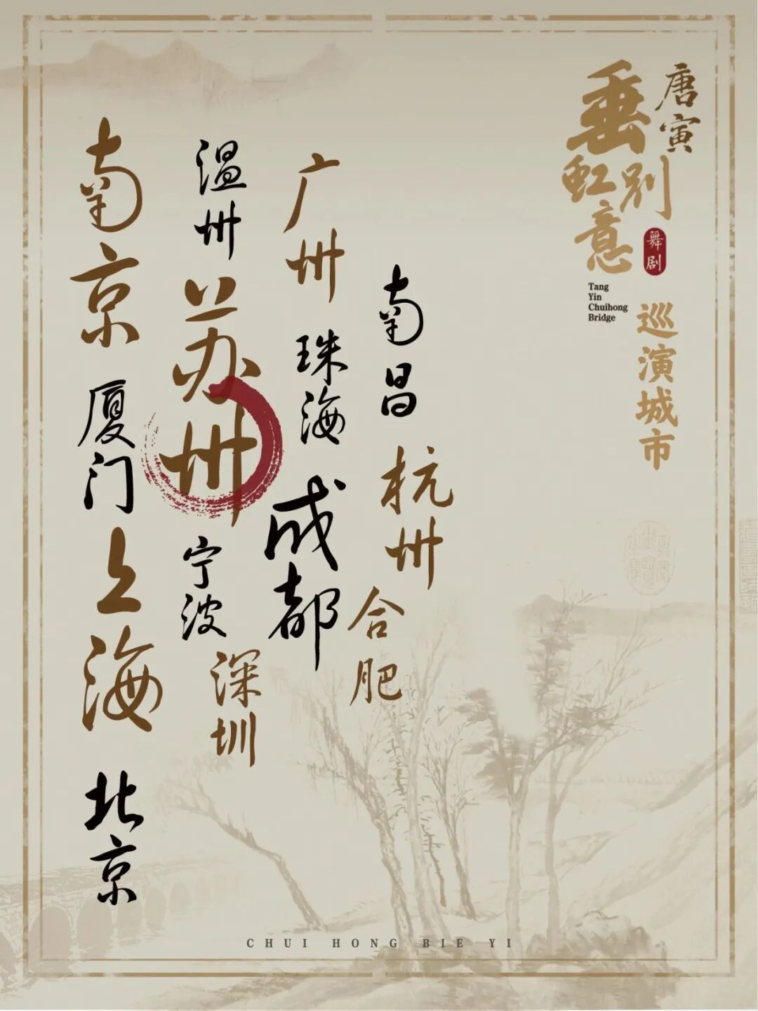 活动现场公布了《垂虹别意・唐寅》的全国巡演计划。11月7日至9日,这部作品将在江苏苏州迎来首演。之后,将陆续登陆珠海、厦门、广州、深圳、上海、北京等13座城市。