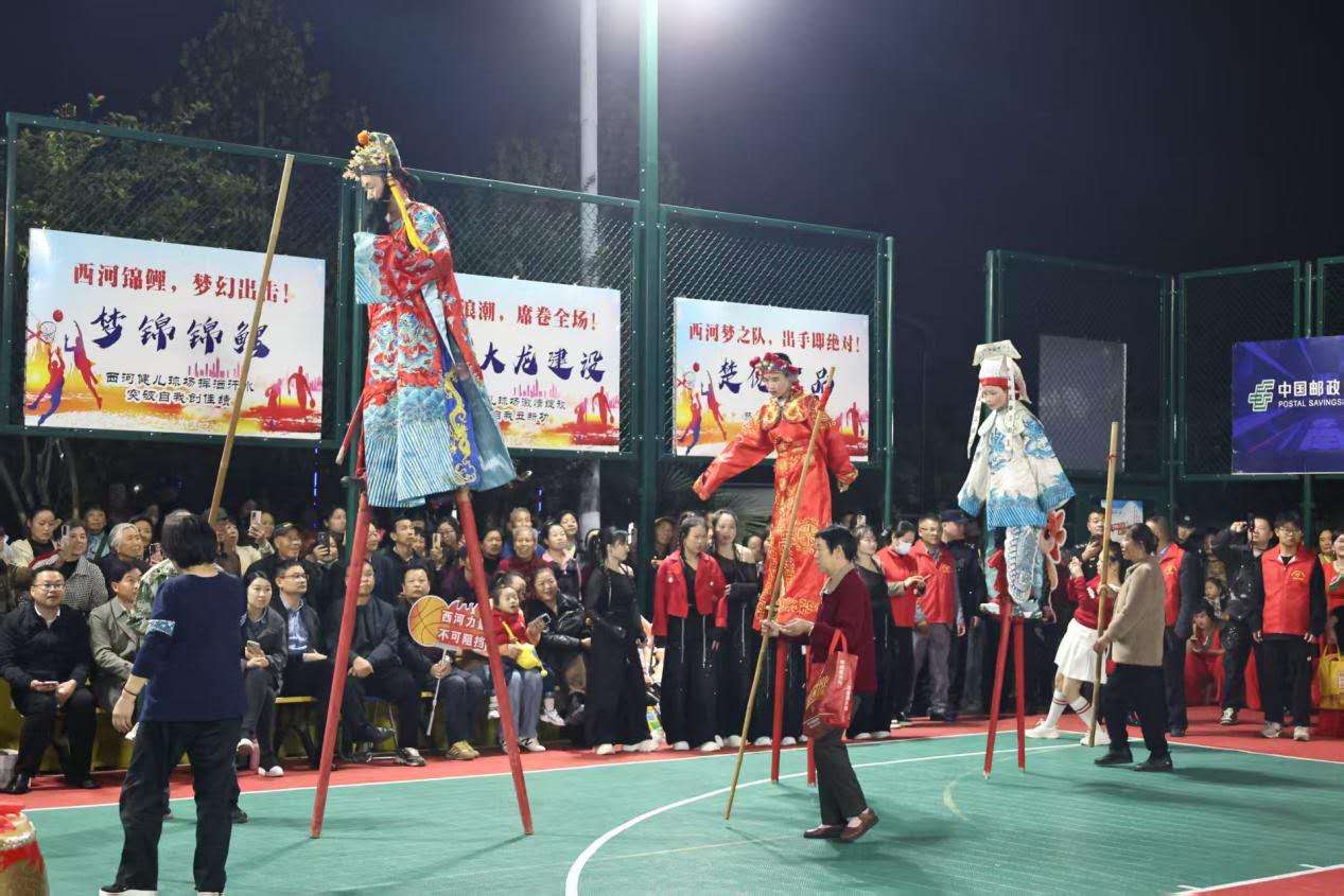 本次联赛创新将非遗展演融入各乡镇小组赛现场,在各乡镇篮球场轮番上演。肖港镇的抬故事、杨店镇的舞龙、西河镇的高跷……这些地方传统文化成为凝聚人心的情感纽带。
