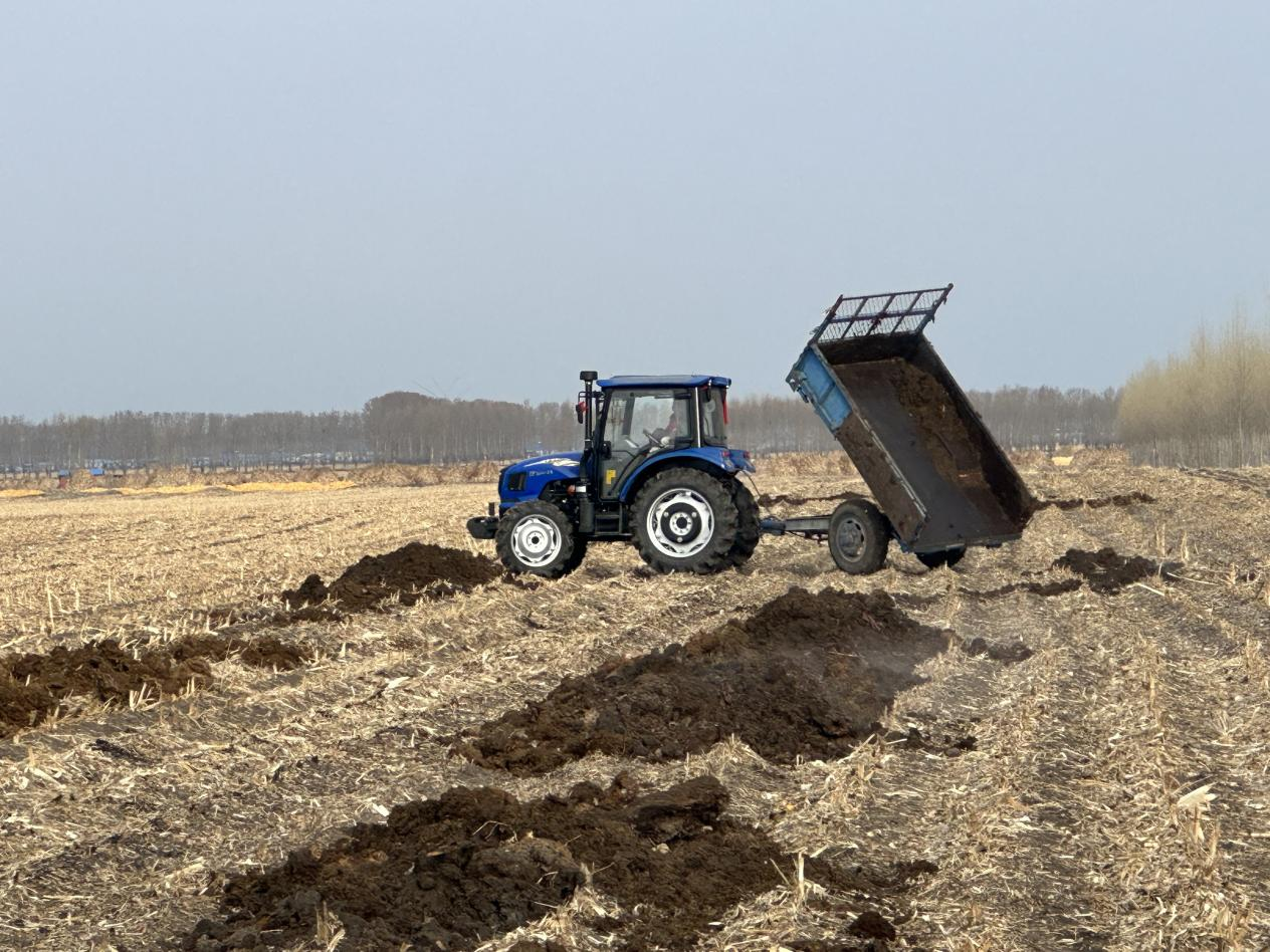 寒冬时节,北风料峭,黑龙江省明水县通达镇繁华村的乡间小路上暖意涌动。清晨的第一缕阳光洒在田埂上,村头一座小山般的牛粪堆旁人头攒动,钩机轰鸣作业,五台四轮拖拉机满载粪肥穿梭田垄其间。
