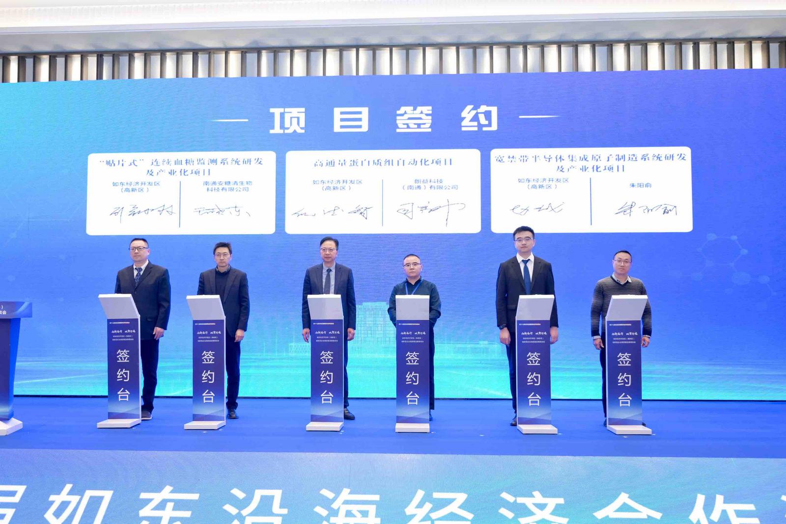 握手签约环节更见实效:经开区刚和江苏省高新技术创业服务中心、南通人才发展集团“牵上手”,就为企业带来“国家技术转移示范机构+专业人才平台”的双重支撑;紧接着,高通量蛋白质组自动化、“贴片式”连续血糖监测、宽禁带半导体原子制造——等6个产业项目当场敲定,海内外客商用实际的“投票行动”看好如东。