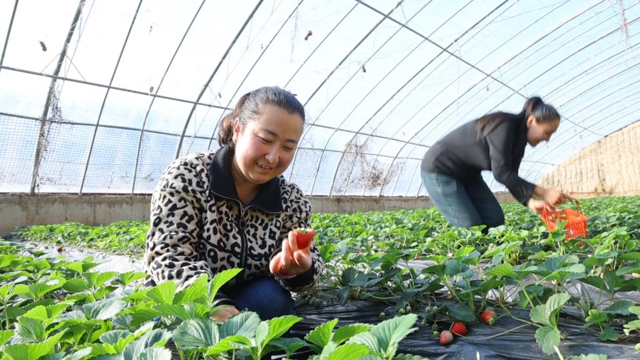 库车市民麦迪努尔·尼亚孜说:“这里的草莓又大又甜,今天我和朋友一起过来采摘,准备带回去给家里人品尝。”
