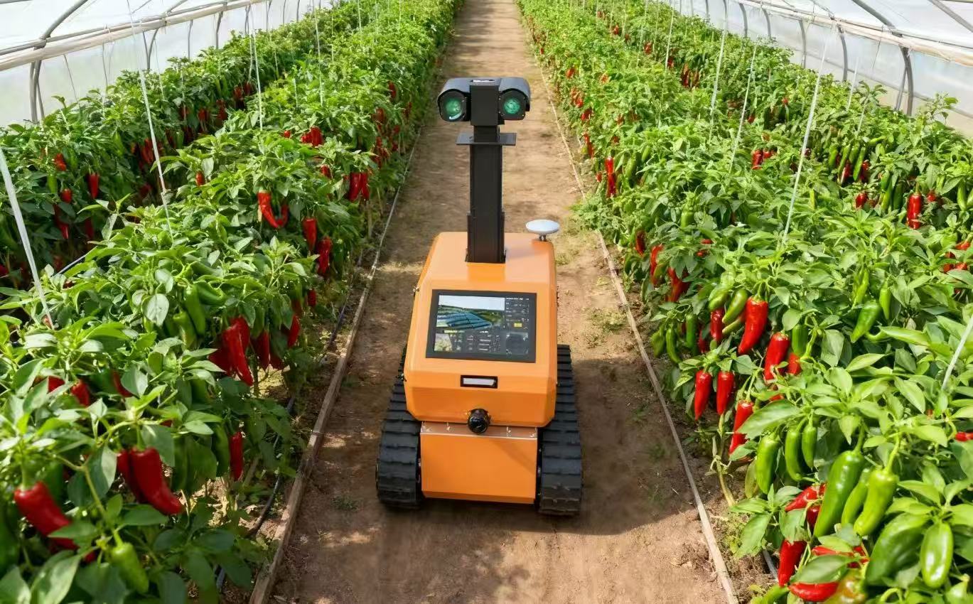 在项目示范区——湖北南漳的智慧农业产业园中,80余座智慧大棚里,履带式巡检机器人穿梭其间,精准采集作物长势、病虫害数据;空中无人机编队按预设航线自主完成喷洒任务;控制中心大屏幕上,环境温湿度、土壤墒情、光照强度等参数实时更新,AI算法根据数据动态生成作业指令,通过5G网络下发至各类智能农机,实现从旋耕、起垄、播种到采摘、运输的全流程自动化。金美科林总经理刘晓明介绍,传统大棚一亩地需2人管理一天,而如今1台机器人可覆盖20亩,效率提升40倍。