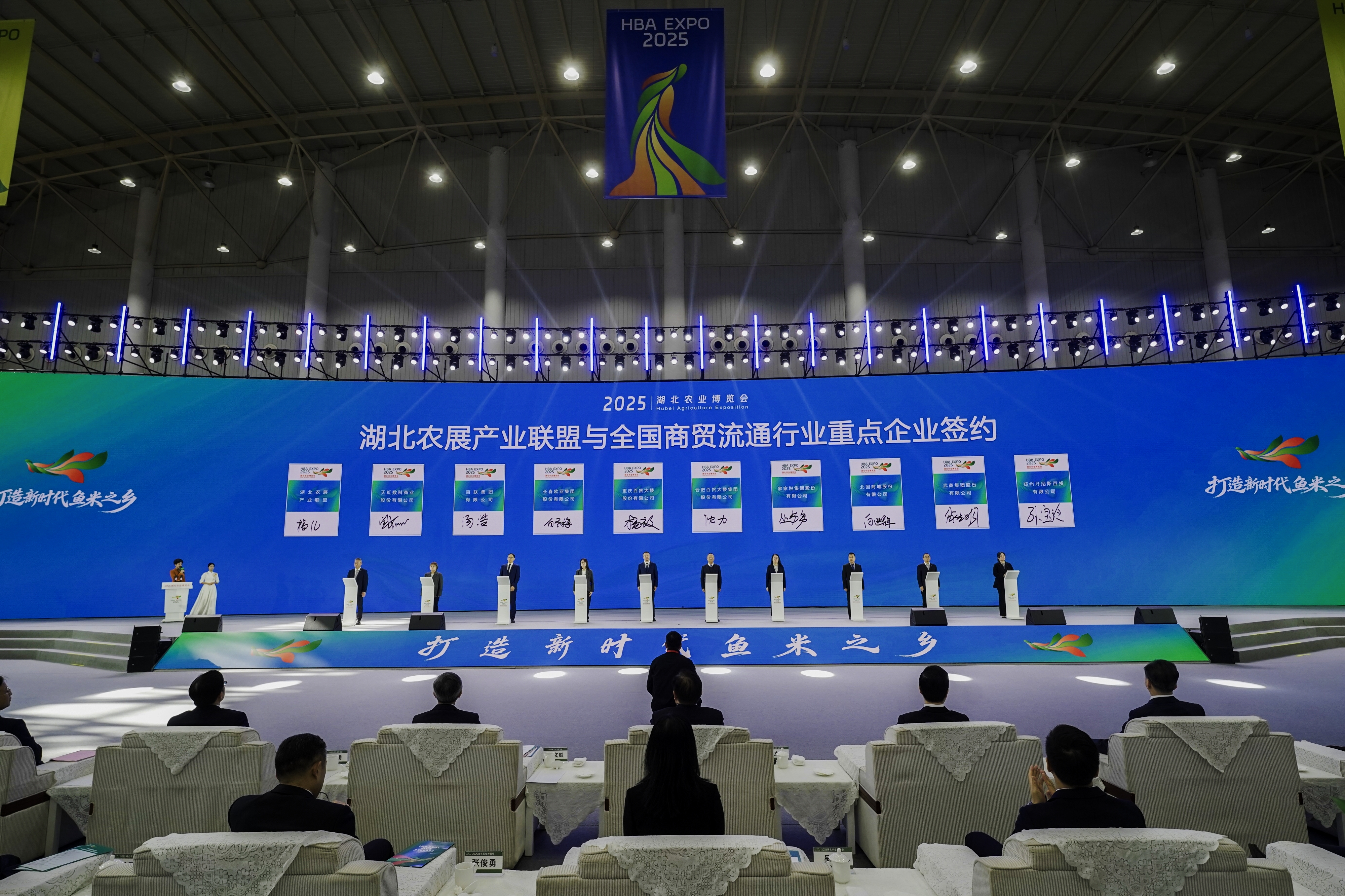 开幕式上举行了集中签约仪式。在与会嘉宾的见证下,湖北农展产业联盟与全国商贸流通行业重点企业现场签约;10个招商引资项目进行集中签约,签约金额达244.69亿元。更多项目、更多订单还在进一步洽谈中。这些成果将助力湖北乡村产业发展,带动更多资源汇聚乡村全面振兴,为推进中国式现代化湖北实践注入源源活力。