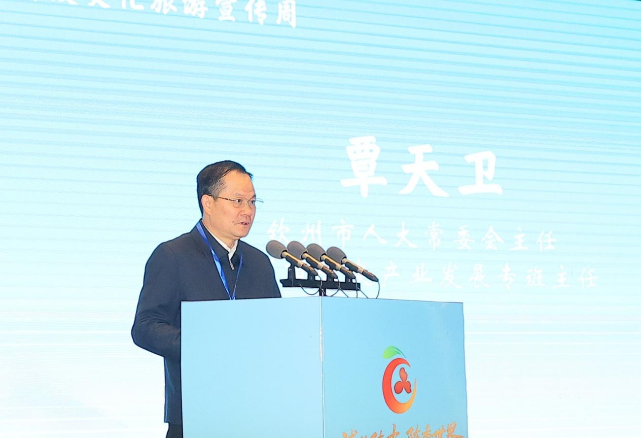 广西钦州市人大常委会党组书记、主任,市陈皮专班主任覃天卫致辞(李卓然 摄)
