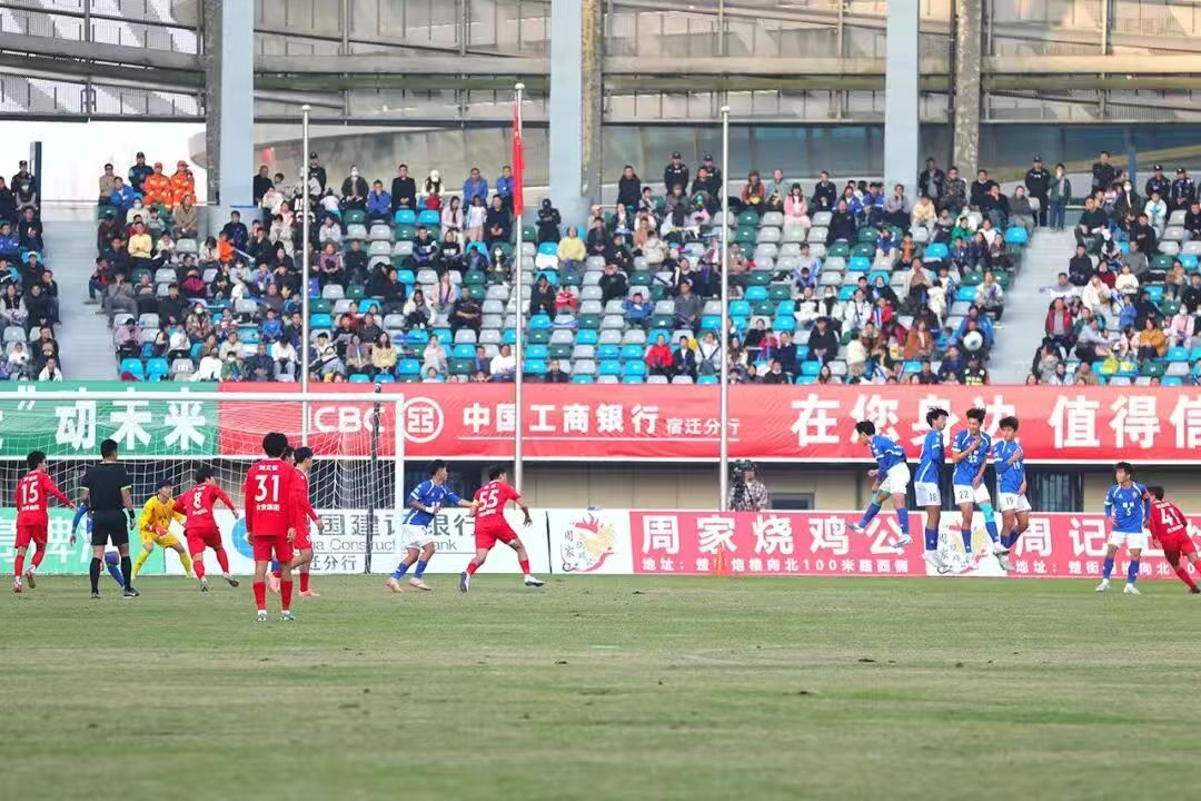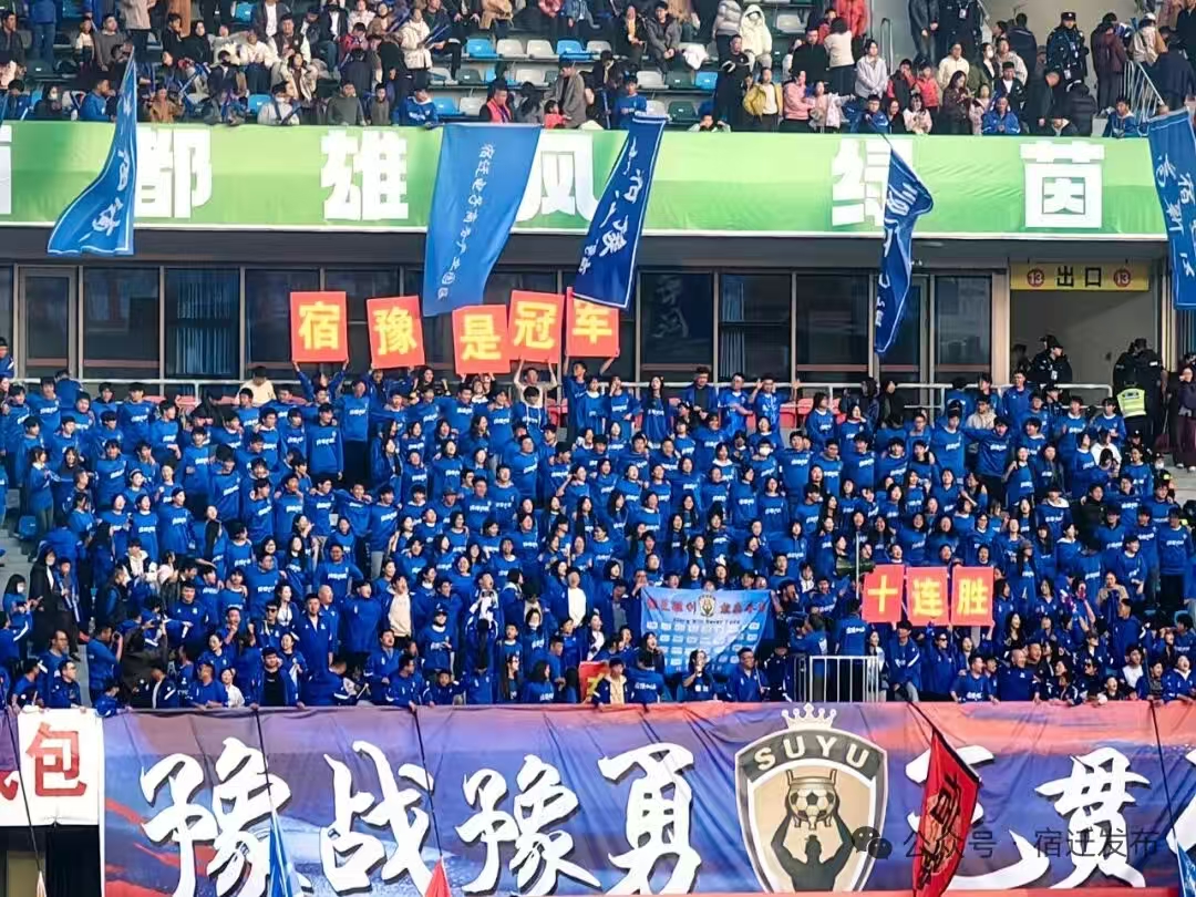 下半场补时阶段宿城队获得点球机会,宿城队8号球员卜飞扬担起重任果断起脚飞射足球应声入门为宿城队扳回一分。当主裁判吹响全场比赛结束的哨音,比分定格在2∶1。整个宿迁梦之蓝・奥体中心也成为一片沸腾的海洋。