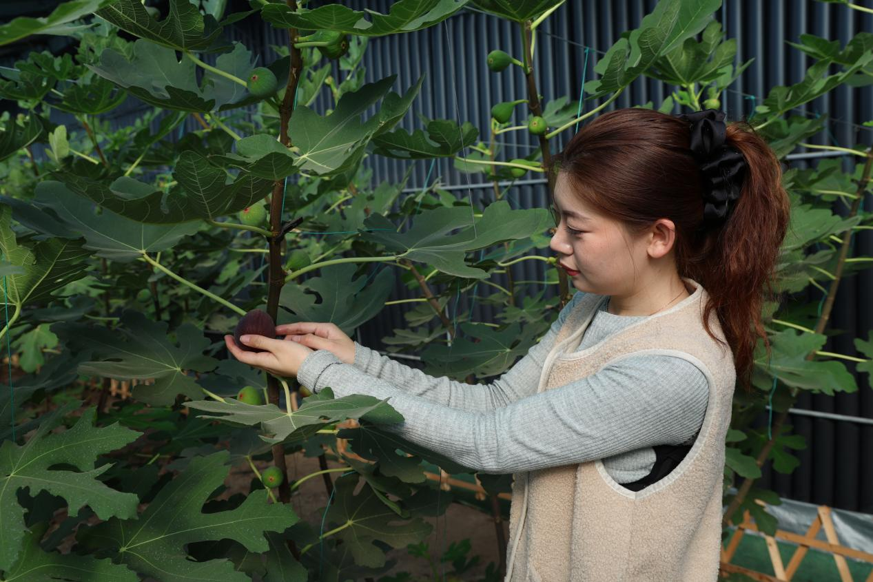 游客在古榆农业生态园采摘无花果 (郭大蕾 摄)