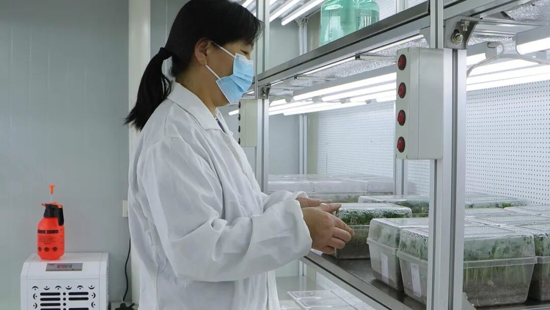 技术人员正在实验室开展破碎率、发芽率等指标测试。(李可施 摄)