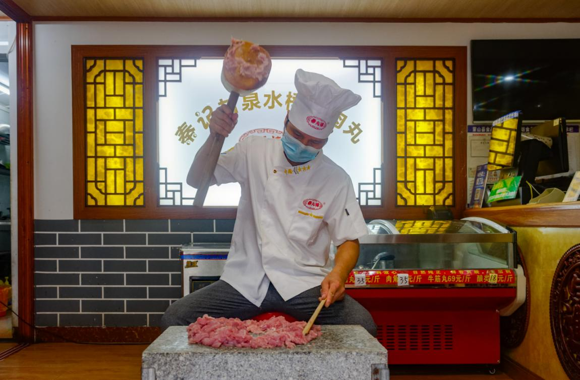 蒙山棰打肉丸制作现场(蔡中杰 摄)