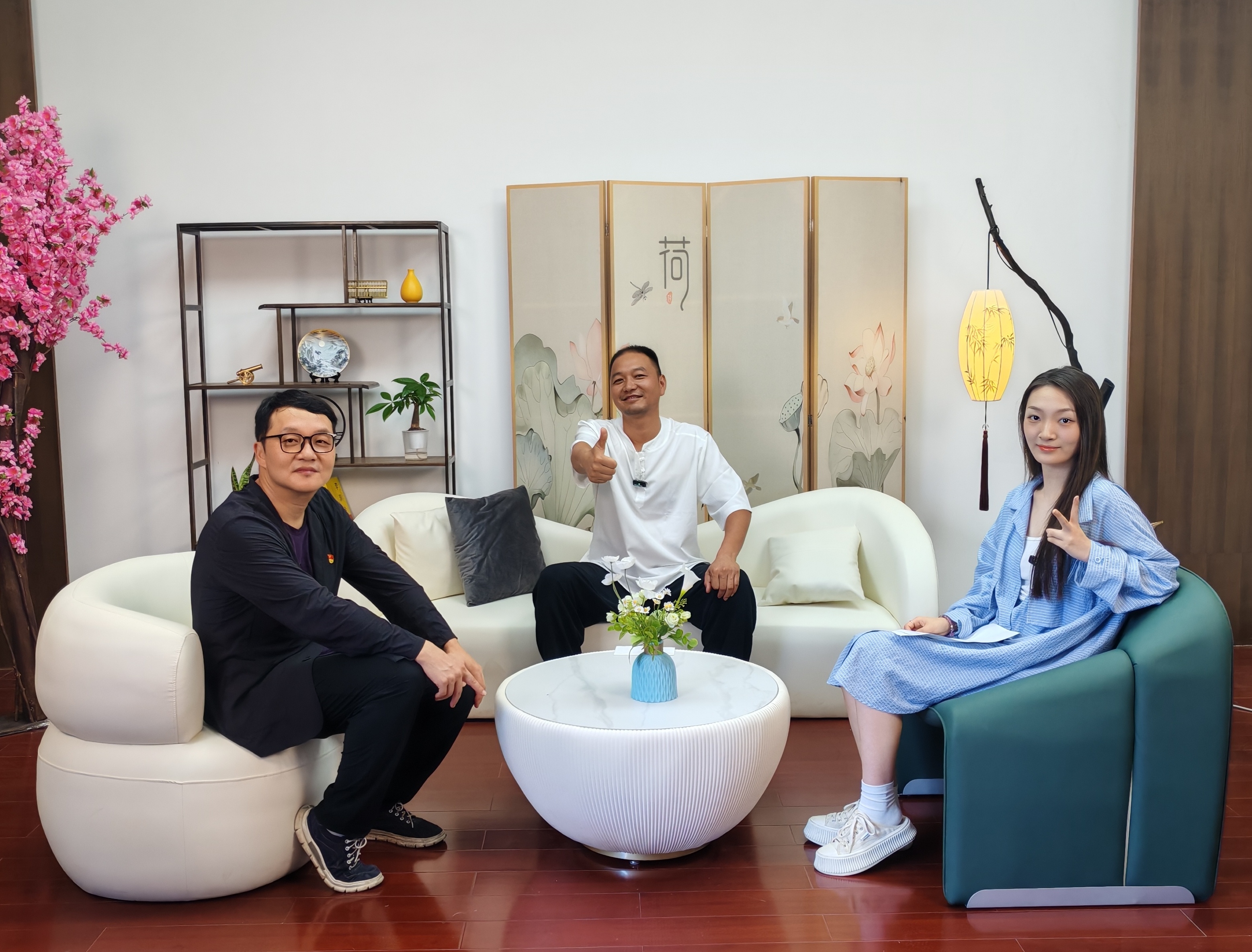 “汉江会客厅”栏目邀请襄阳漆器第六代传承人隗鹏进行网络直播(李晶 摄)