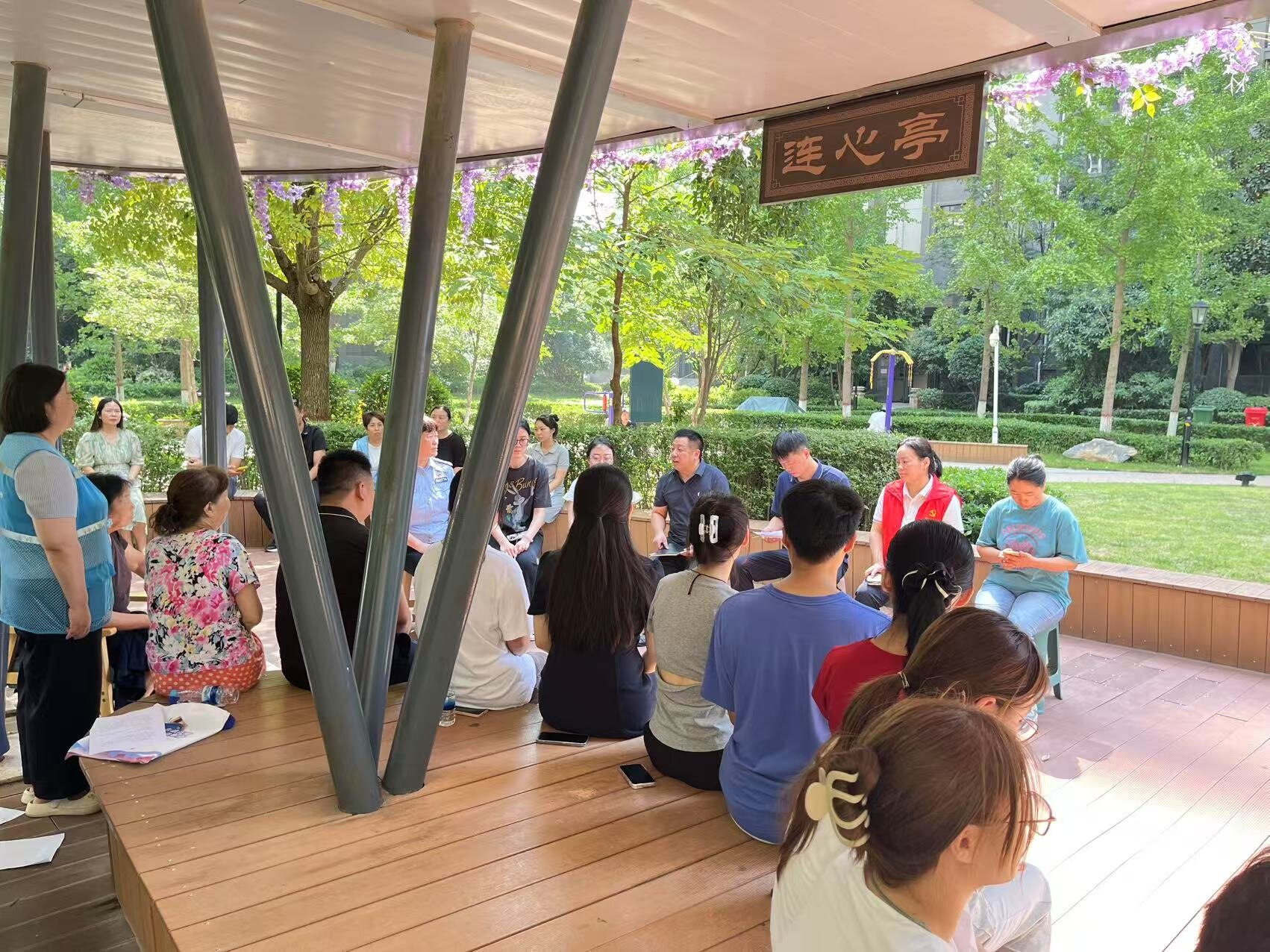 甘棠街道临湖社区召开“甘棠议事会”,协商解决汛期排水管淤堵问题(张展展 摄)