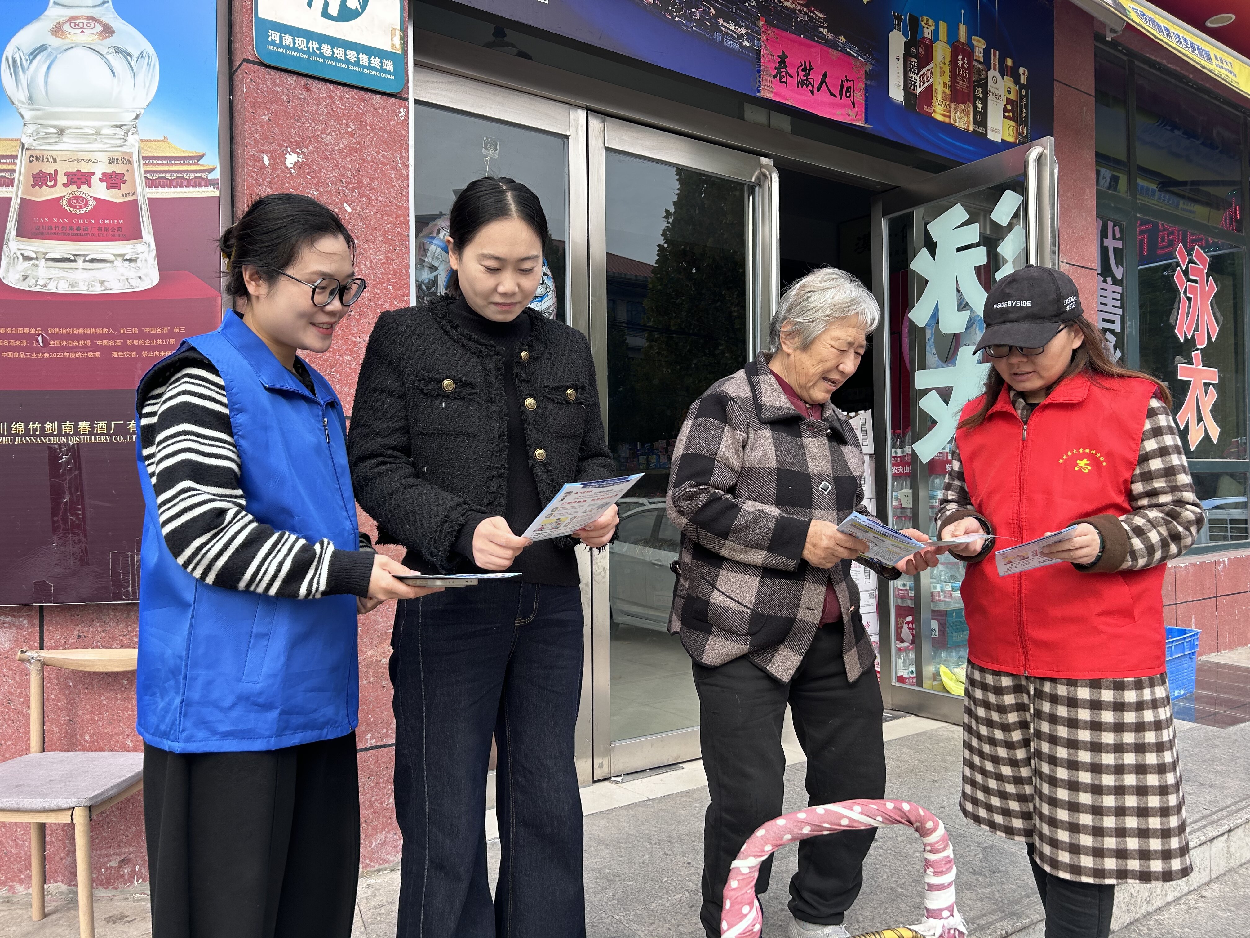 大营镇神力社区“观察员”向社区居民进行反诈宣传(贾紫烨 摄)