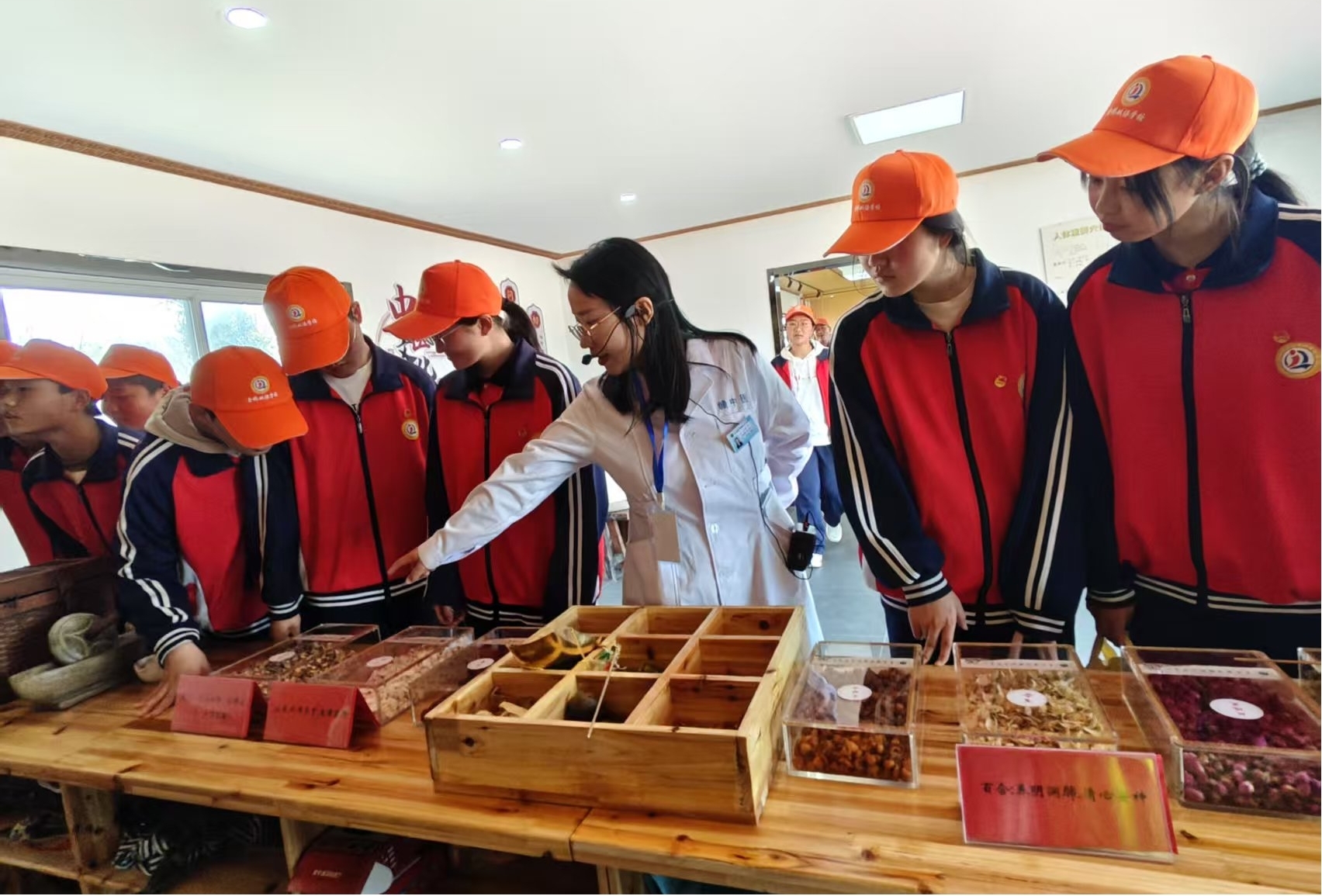 带领学生辨识中草药(孙鹏 摄)