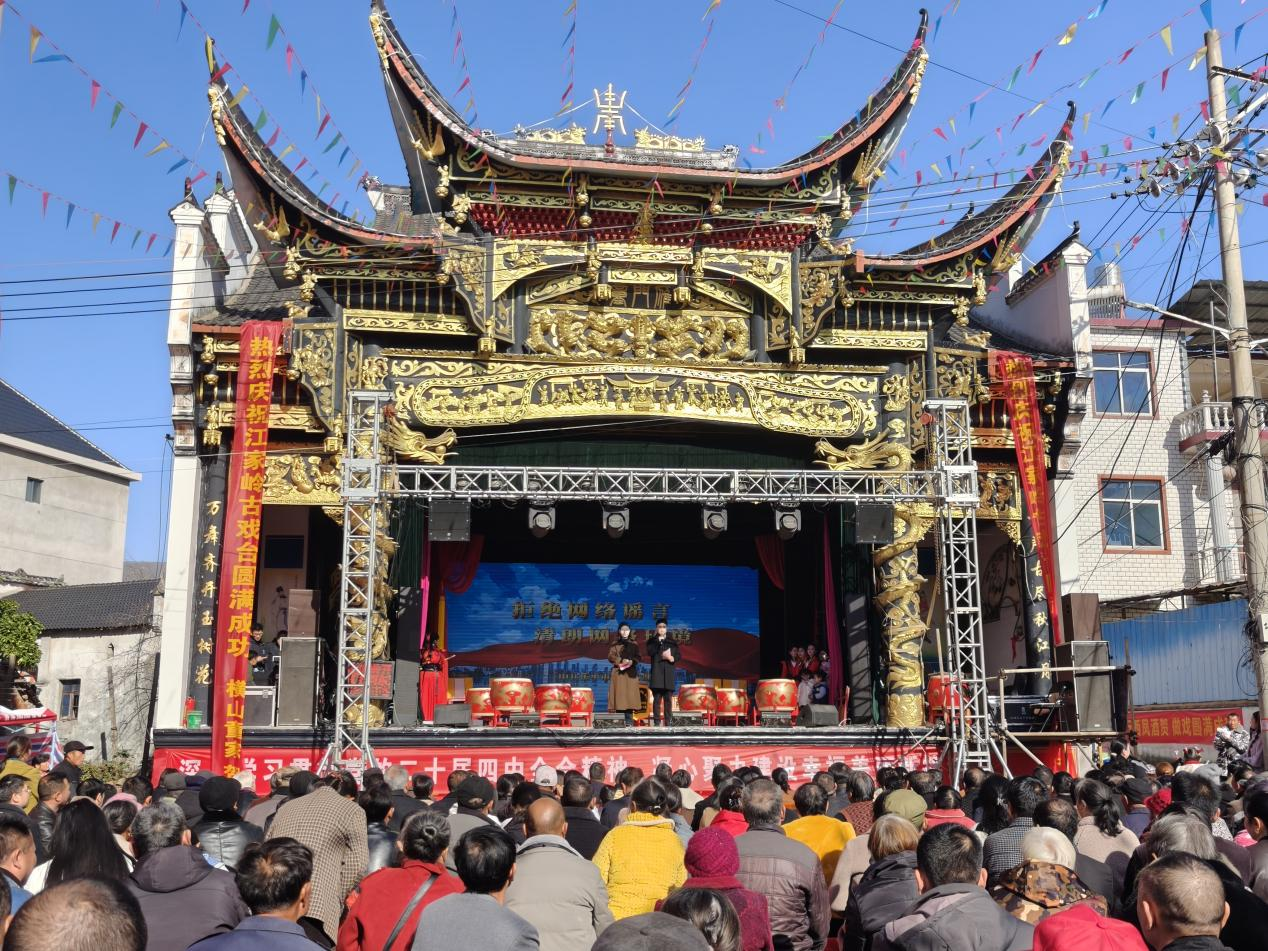 近日,由江西省乐平市新时代文明实践中心主办的“古戏台讲堂”宣讲暨移风易俗文艺巡演活动在乐平市接渡镇刘垄村委会江家岭村古戏台精彩上演。乡镇机关干部与村民在冬日暖阳的沐浴下共同欣赏、学习这场融合理论宣讲与文艺展演的活动。