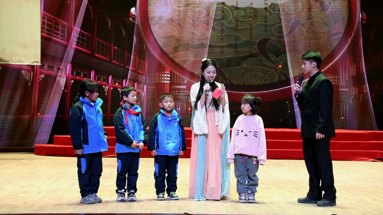 演出在悠扬的古乐声中拉开帷幕,《将进酒》《使之塞上》《声声慢》等一首首耳熟能详、脍炙人口的唐诗宋词,通过演员们精心编排的情景演绎、舞蹈伴舞与音乐烘托,立体呈现在观众眼前。舞台上,李白、王维、杜牧、杜甫四位唐代著名诗人的扮演者围坐品茗、吟诗作对,豪情壮志与诗意情怀展露无遗。一曲琴音落下,四位“诗人”走下舞台与学生、观众互动开展“飞花令”,台下学生们踊跃举手、争相应答。随后的文学常识讲解、诗词常识问答等环节,更是让观众在趣味互动中加深对经典诗词的理解与记忆。