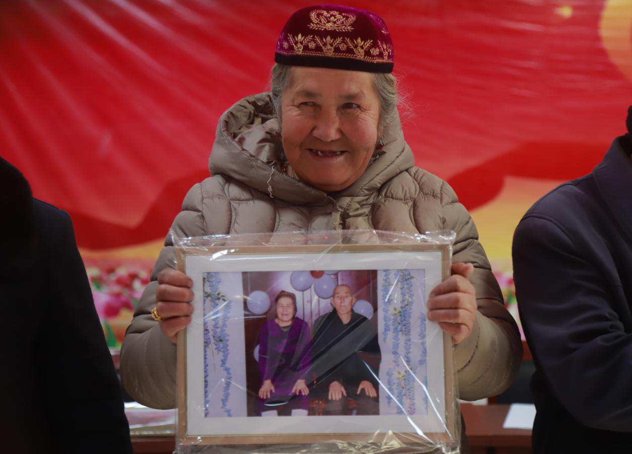 宣讲结束后,活动进入了一个温馨而充满期待的环节。温宿县公安局驻皮亚其村工作队与村两委干部,为前期自愿报名、感情和睦的多对老年夫妻现场赠送了精心装裱好的合影照片。这些照片是工作队与村两委在前期走访中,特意为这些相濡以沫数十载的“老来伴”们拍摄制作的。