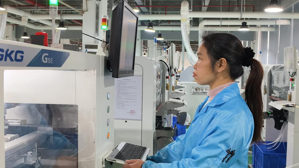 12月4日,走进武宣县东融产业园的广西瑞展鑫科技有限公司,生产车间里一派繁忙的生产景象:11条生产线全速运转,自动化贴片设备精准高效地完成电子元件贴合,智能组装流水线上机械臂默契配合,老化测试台24小时不间断监测产品性能。车间内,技术人员在控制台前轻点屏幕即可调控生产参数,“机器为主、人工为辅”的智能化生产场景,生动诠释着武宣承接新兴产业的强劲实力。