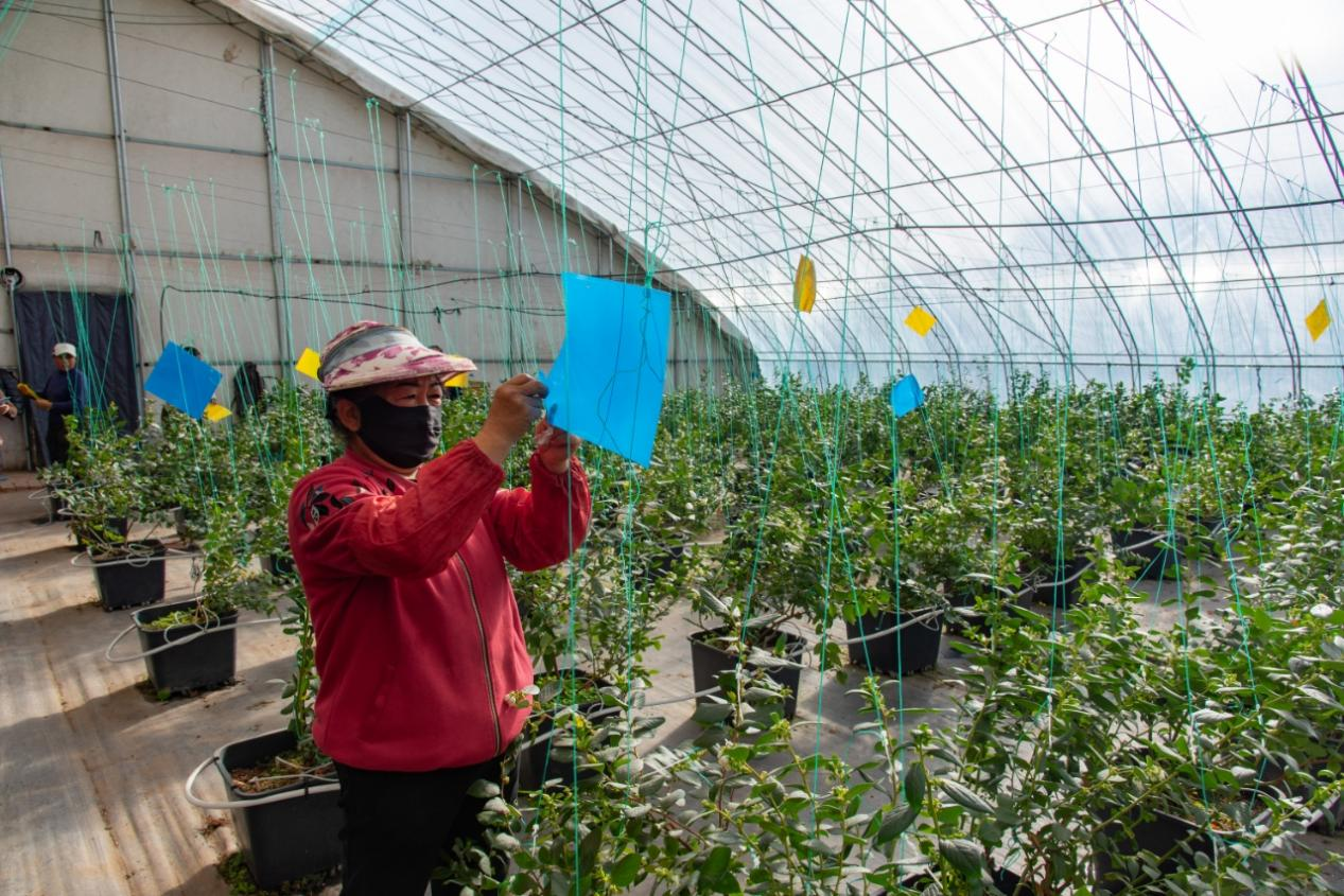 种植户悬挂防虫板开展绿色种植管理(楚向东 摄)
