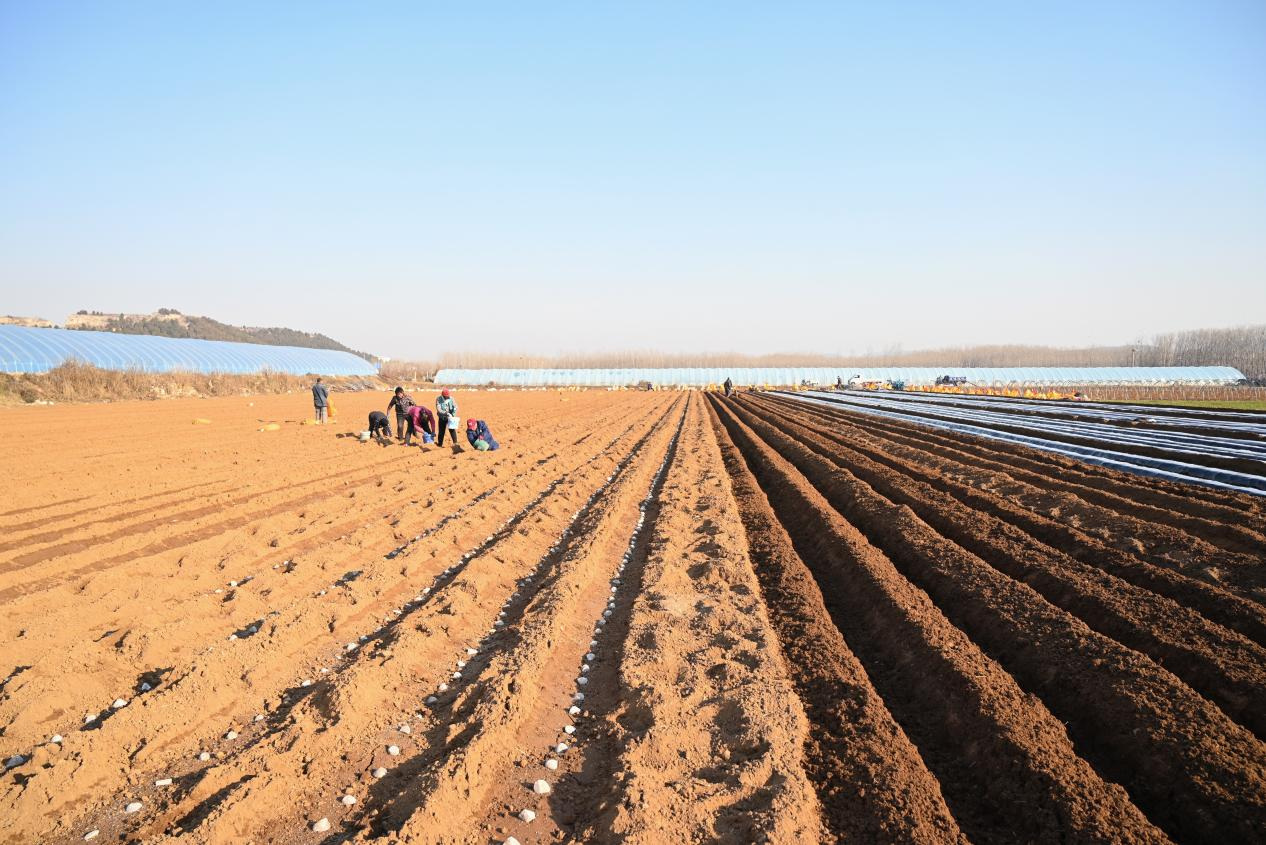 初冬清晨,阳光斜照进山东省肥城市桃园镇连片的银色设施大棚。村民们分散在笔直的垄畦间,与轻巧的播种机默契配合,展开一年中最关键的一场“冬播”。播种、施肥、覆土、覆膜……多项工序在农机手的精准操作下一气呵成,为一颗颗马铃薯种安下“新家”。