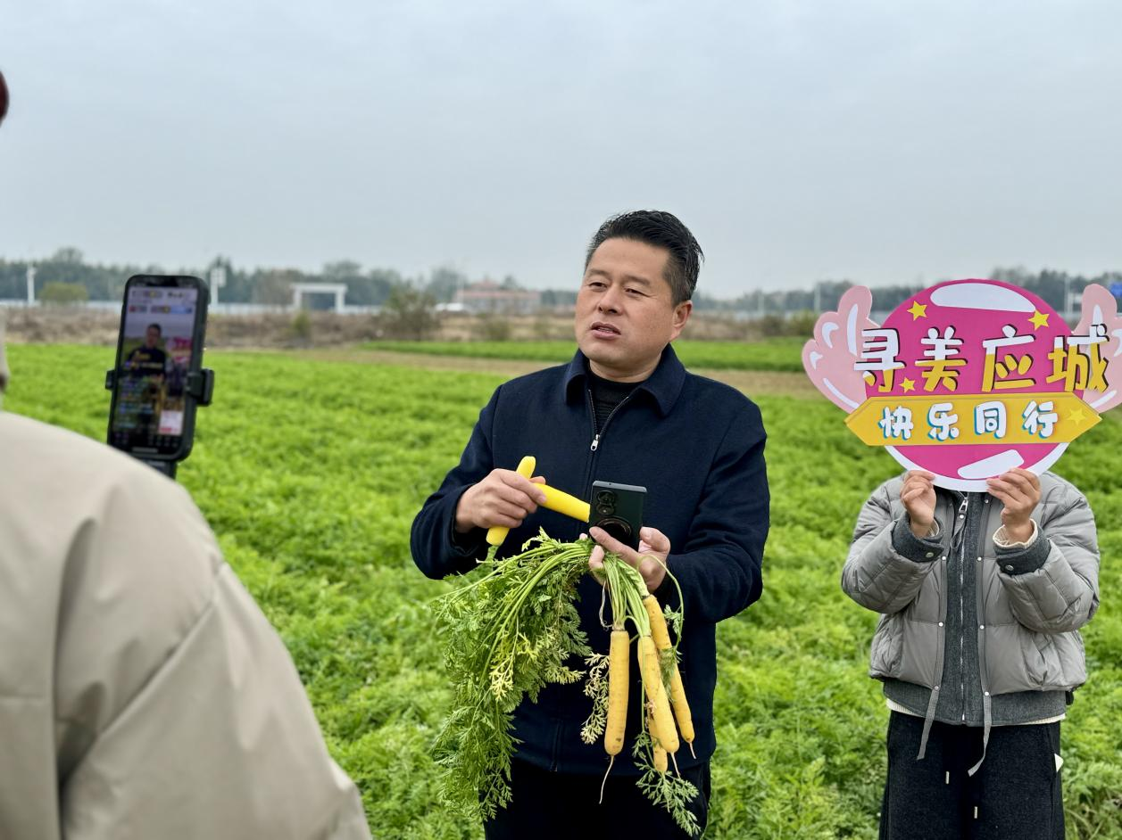 12月5日,湖北省应城市城中街道周陈村的胡萝卜田里,应城市“12·5”国际志愿者日网络志愿者助农直播服务活动火热开启,本土网络达人手持刚采摘的胡萝卜,在镜头前热情推介,田间地头的丰收场景吸引大批网友驻足下单。