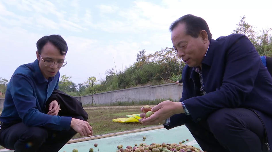 聂异华(右)锚定油茶产业,成为第一个“吃螃蟹的人”。(朱宇琦 摄)