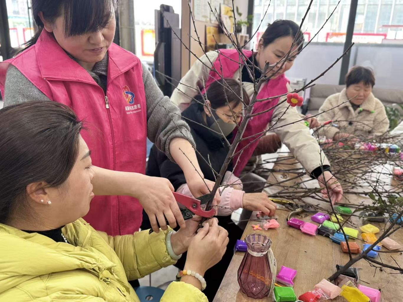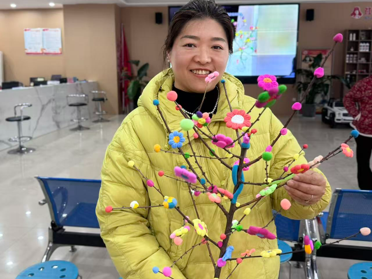“黏土生花绘新意”环节里,工作人员细致讲解黏土花制作技巧与造型要点,居民们认真聆听、反复尝试,即便多数人是首次接触黏土花制作,也在耐心摸索中完成专属作品,指尖绽放的鲜花不仅定格创意,更装满了参与活动的喜悦;“树枝创意大变身”环节尤为亮眼,坚硬的天然树枝搭配柔软多彩的黏土,在居民们的奇思妙想下,摇身变为特色鲜明的创意摆件,大家相互交流创作思路、分享制作经验,在发挥创意、锤炼技能的同时,拉近了彼此距离。