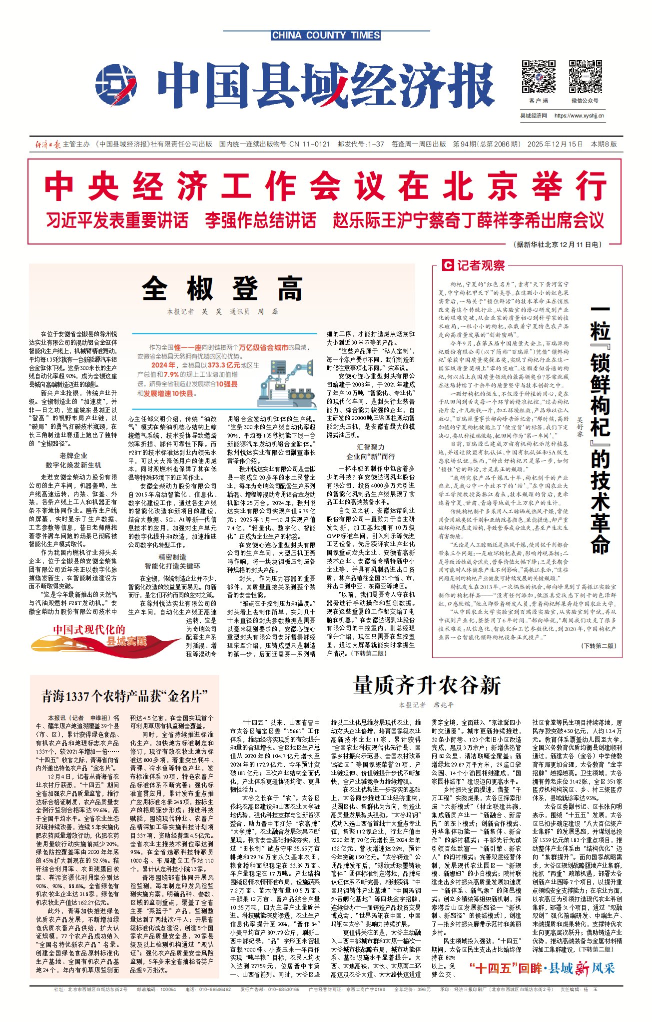 “十四五”以来,山西省晋中市太谷区锚定区委“15661”工作体系,推动经济实现质的有效提升和量的合理增长。全区地区生产总值从2020年的104.7亿元增长至2024年的172.9亿元,今年预计突破181亿元;三次产业结构全面优化,产业体系更趋协调均衡、更具韧性活力。