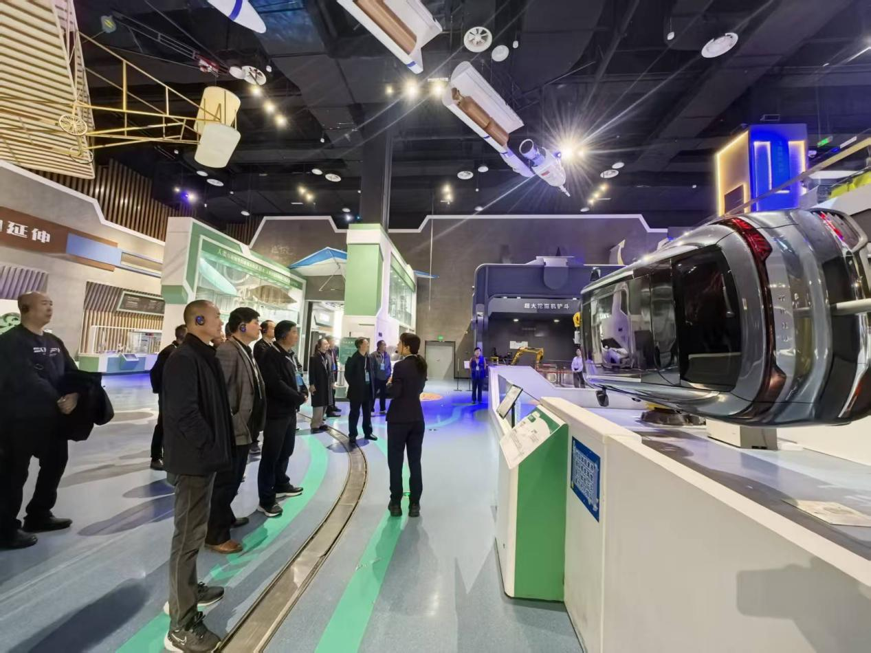 探秘智造,感受科技创新活力。活动结尾,代表们来到10号“智造”展厅参观,这里呈现了制造业的发展历程和现代智能制造技术,包括汽车、轮船、飞机等制造相关展品,让代表们了解科技在制造领域的创新应用。代表们亲身体验虚拟驾驶高铁,感受速度与科技的完美融合,沉浸于列车疾驰时的平稳与高效。全息投影与实时数据交互系统直观展现了高铁运行中的智能调度与安全控制机制。通过与机器对打乒乓球,代表们直观感受到工业机器人精准的运动控制与高速反应能力。