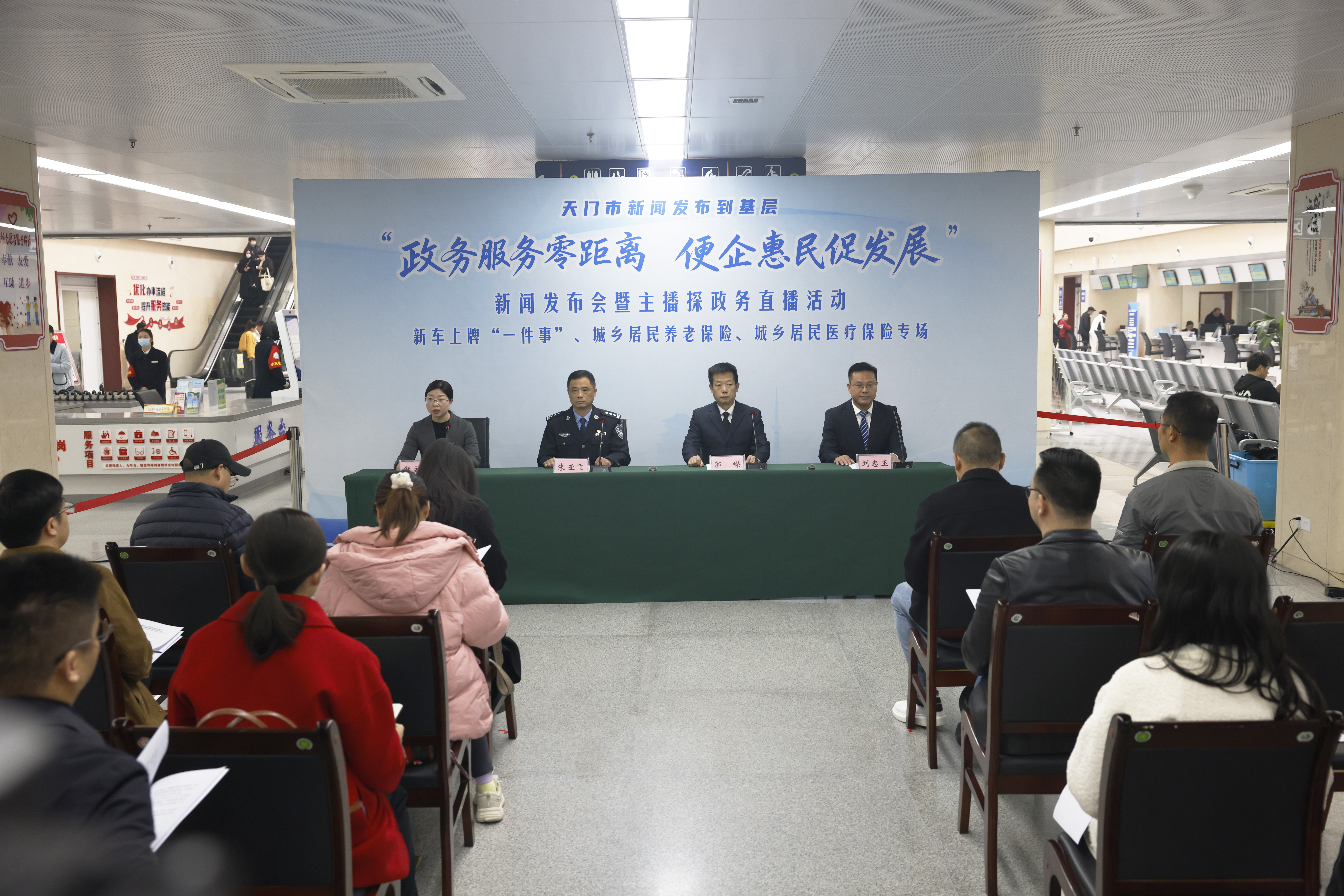 本次活动聚焦国产小客车新车上牌“一件事”·城乡居民养老保险·城乡居民医疗保险主题,由天门市政府新闻办与天门市政数局联合主办,首次创新采用“新闻发布+主播探访”双模式进行全程直播,将政策解读与现场体验深度融合,吸引众多市民云端围观。