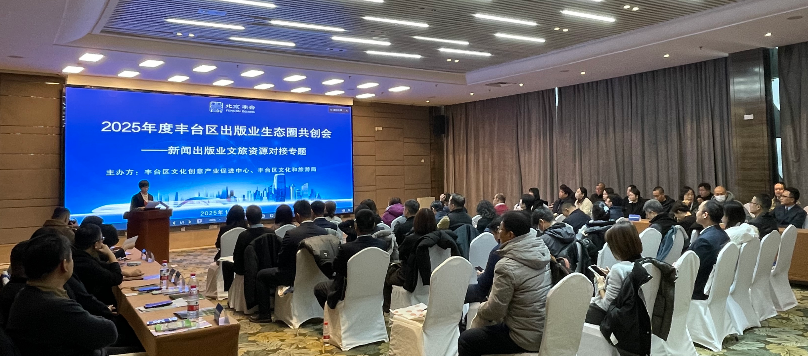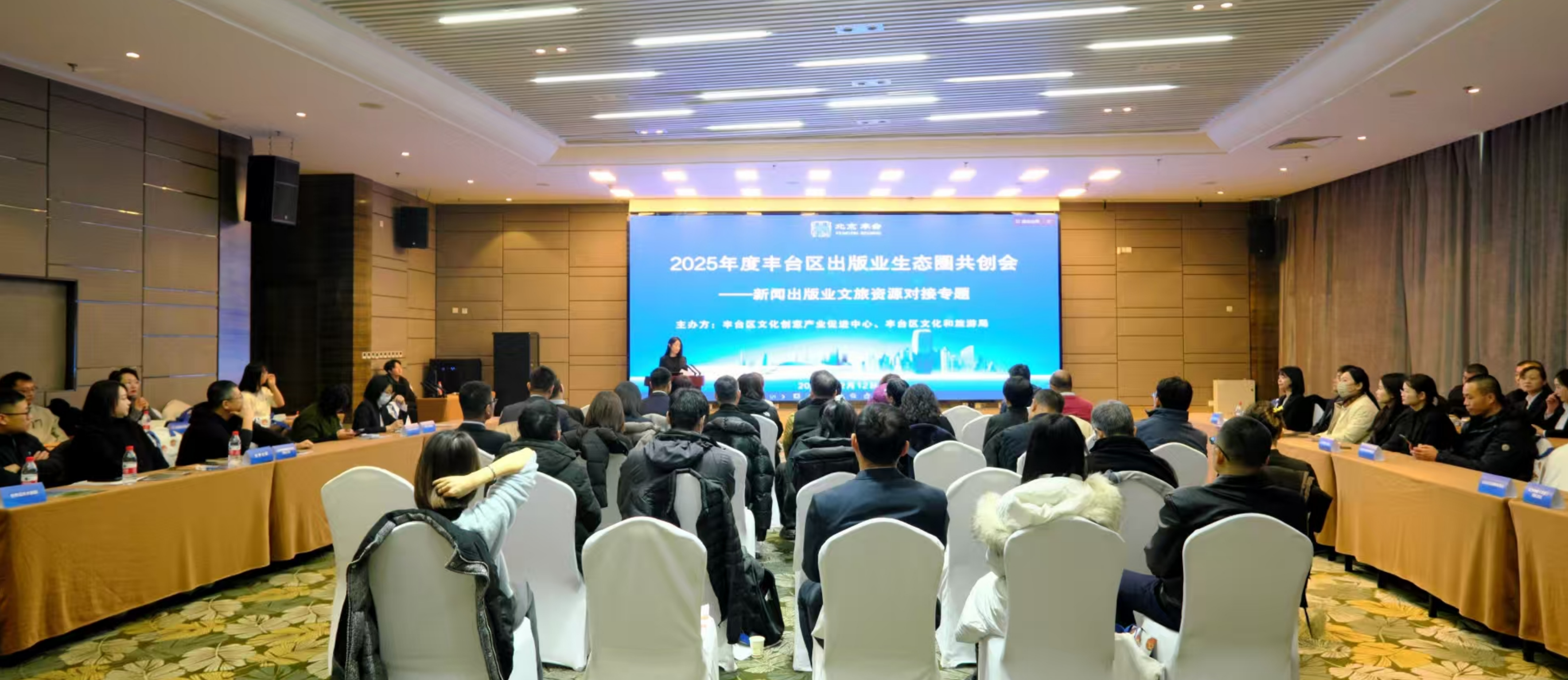 12月12日下午,北京园博大酒店内气氛热烈,一场以“资源共享、协同共赢”为主题的2025年度丰台区出版业生态圈共创会——新闻出版业文旅资源对接活动在此成功举办。本次活动由丰台区文化创意产业促进中心与丰台区文化和旅游局联合主办,汇聚了人教教材中心、电子工业出版社、法律出版社、北京考古遗址博物馆、北京汽车博物馆、丰台区图书馆等区内50余家出版单位、文旅机构及文创企业代表,共同探讨跨界合作新可能,携手开拓发展新路径。