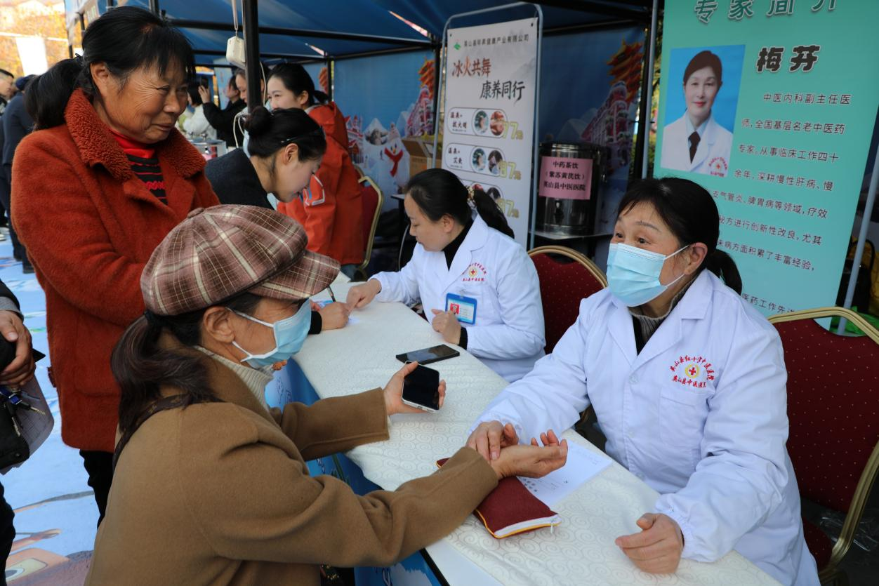 位于5号展位的全国基层名老中医药专家、县医共体总医院中医医院院区副主任医师梅芬,亲临现场为游客提供一对一把脉与健康咨询。梅芬医生拥有四十余载临床经验,尤其在慢性病调理与中医“治未病”领域积淀深厚,她的坐诊让专业的健康关怀变得亲切可及。