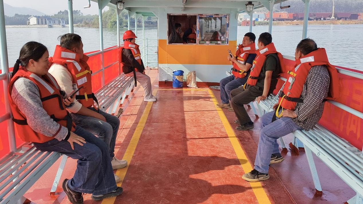 武宣众顺船厂工人上船体验新的客渡船(向国华摄)