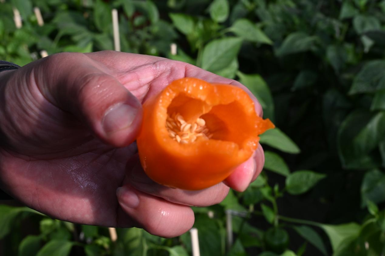 “你尝尝,这是三色彩椒,特点就是果型小、口感脆、甜,色泽亮,肉厚实,可以生吃,在市场上可受欢迎了。”青岛大沽河流域国家农业科技园发展服务中心综合部部长吴德专难掩内心的喜悦,他随手摘下一个辣椒展示着。