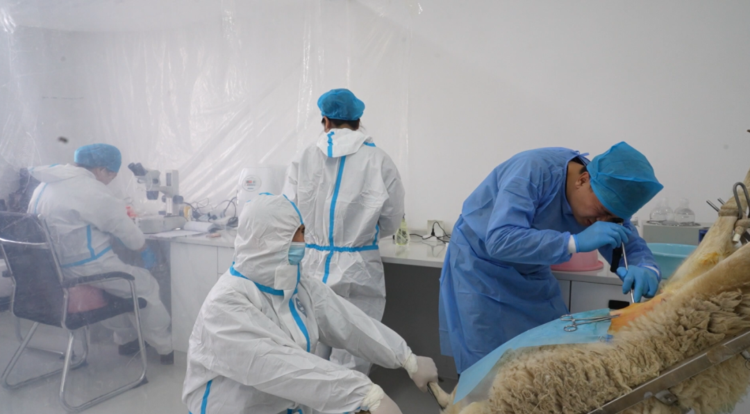 技术人员正在筛选优质胚胎。(依在提古丽·胡拉木 摄)