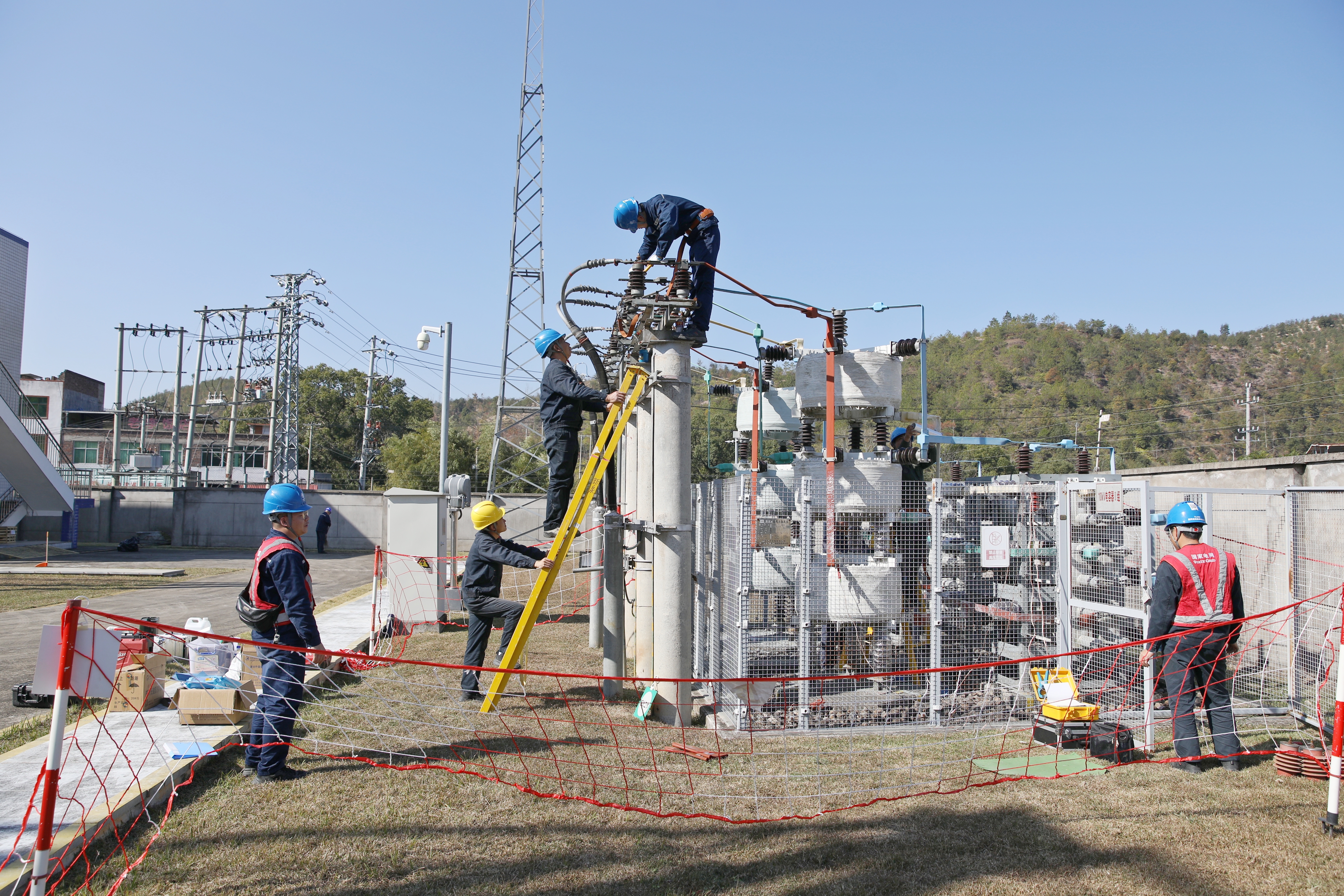 12月18日,国网连城县供电公司变电运检班工作人员在110千伏新泉变电站开展电容器组大修工作。(林海秀 摄)