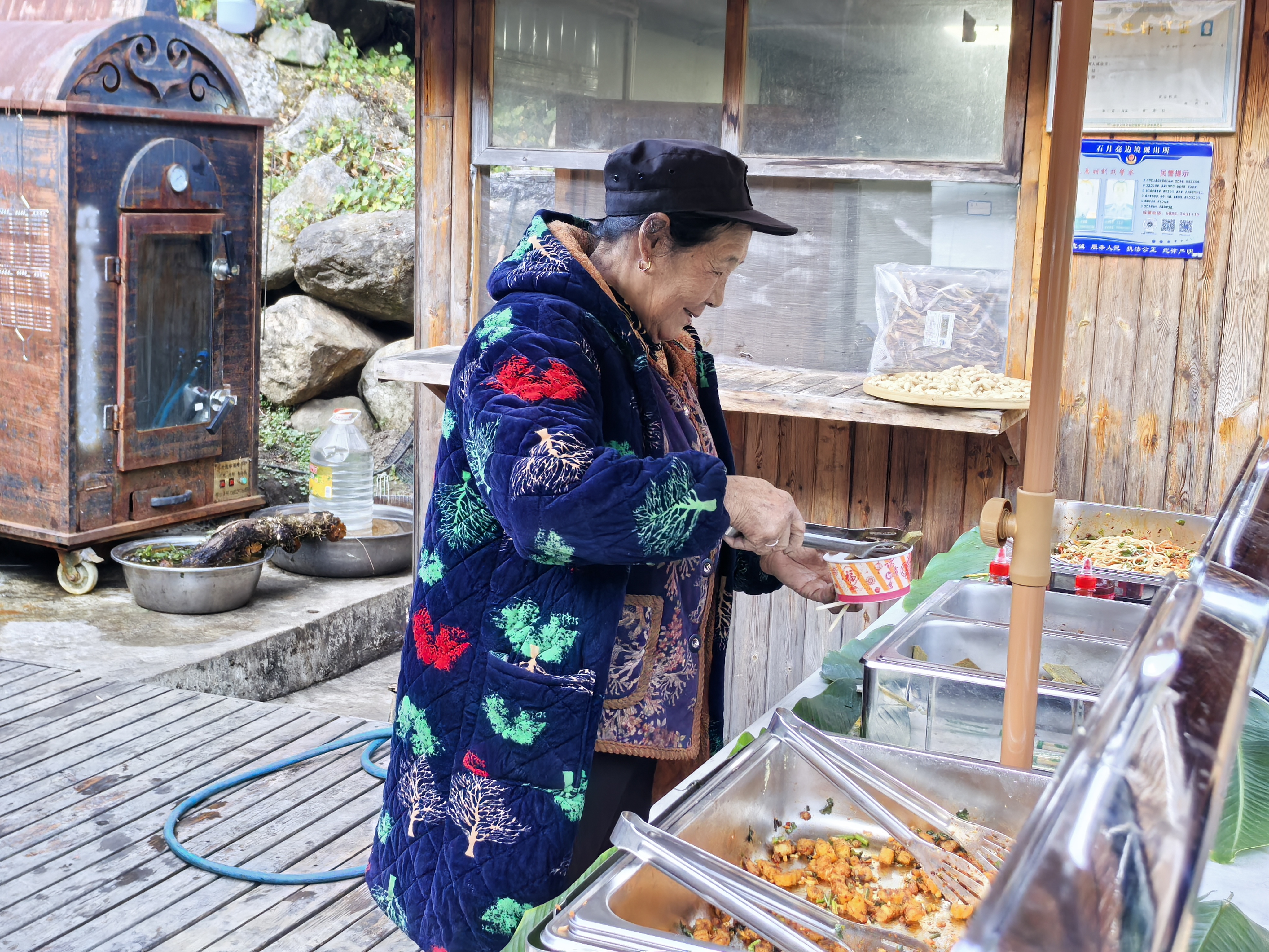 村里老人在“石月亮星谷”景区享用自助餐。(杨欣然 摄)