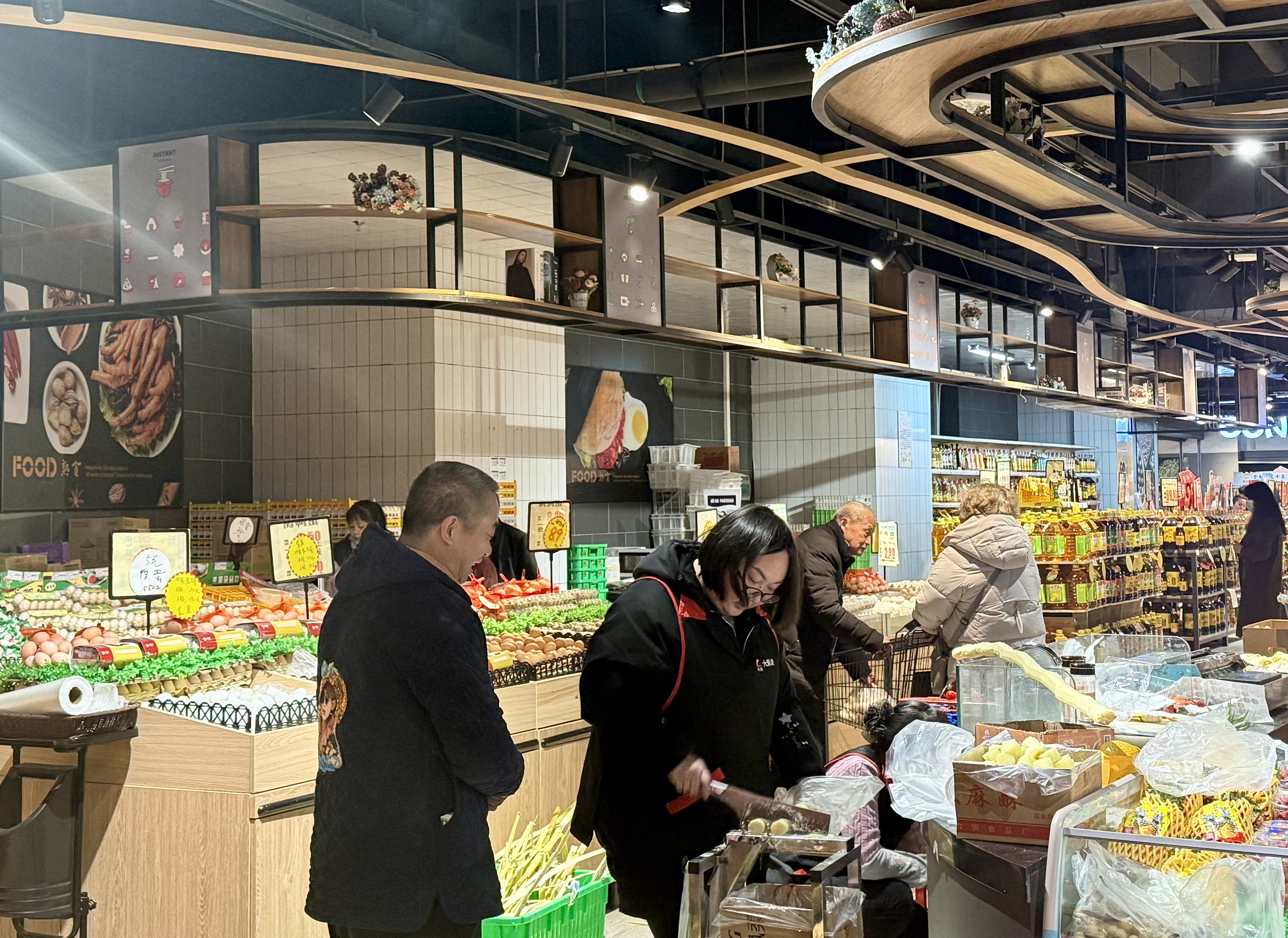 日前,记者在四川省资阳市乐至县叶波大润发超市里看见,超市货架上摆满了各类商品,市民们悠闲地走在货架前,或拣选蔬菜,或反复对比价格挑选生活用品……现场一派热闹而秩序井然的氛围。