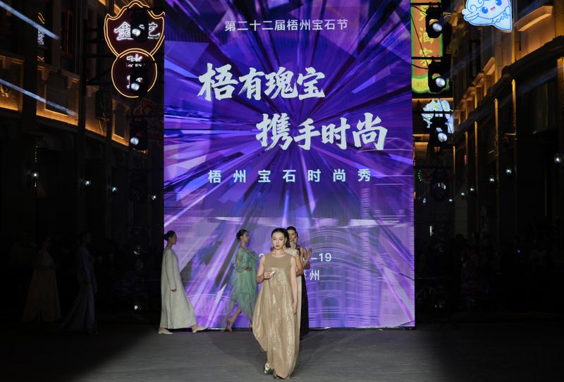 第二十二届梧州宝石节系列活动之梧州宝石时尚秀在骑楼城浪漫上演(麦好明 摄)