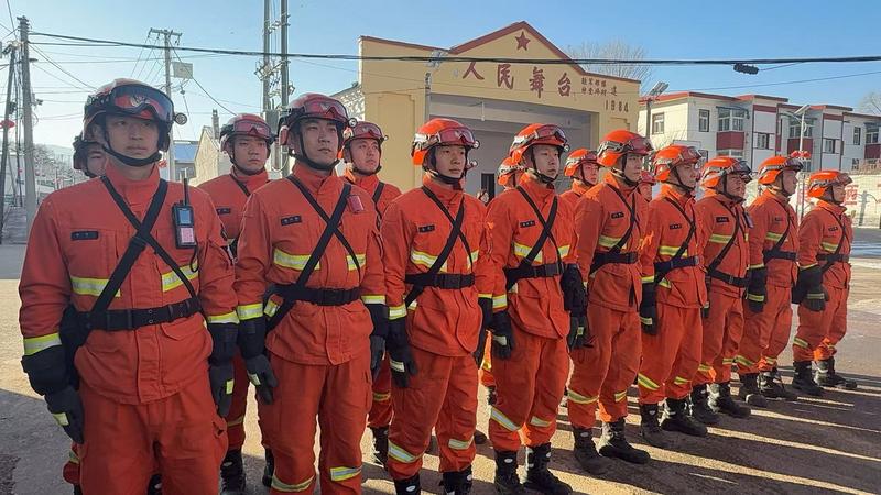 救援队员们以严整姿态备勤(席兆平 摄)