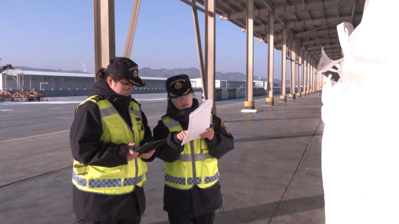阿拉山口海关关员正在监管出口货物。(巴金 摄)