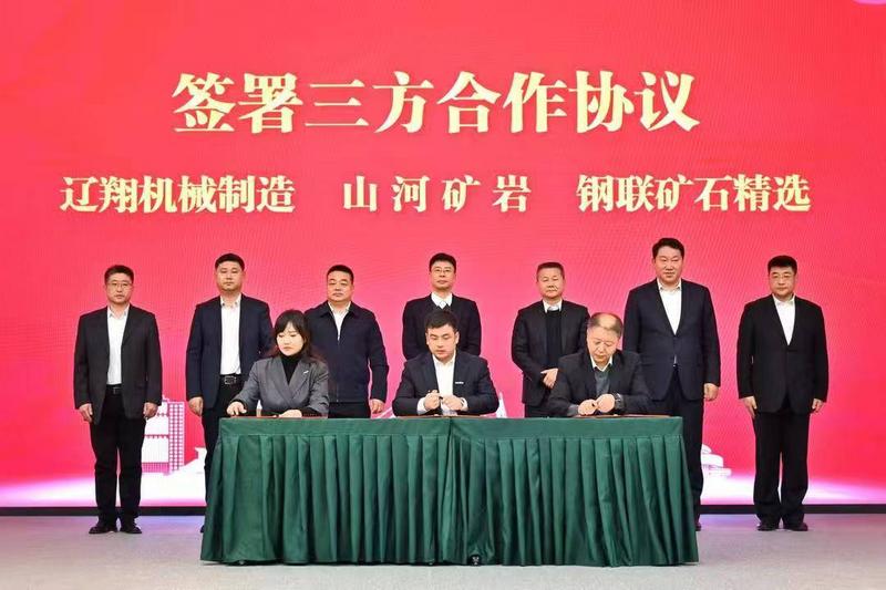 活动现场,山河智能旗下全资子公司湖南山河矿岩装备有限责任公司与本溪钢联矿石精选有限公司、辽宁辽翔机械制造有限公司共同签署三方合作协议,组建合资公司,聚焦LNG增程式新能源宽体自卸车等绿色智能矿用装备的研发、制造、推广等领域开展合作,在技术研发、产业落地、场景应用等方面共同培育区域发展新优势。
