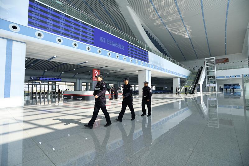 公安巡逻队全力护航汉川北站通车(刘家 摄)