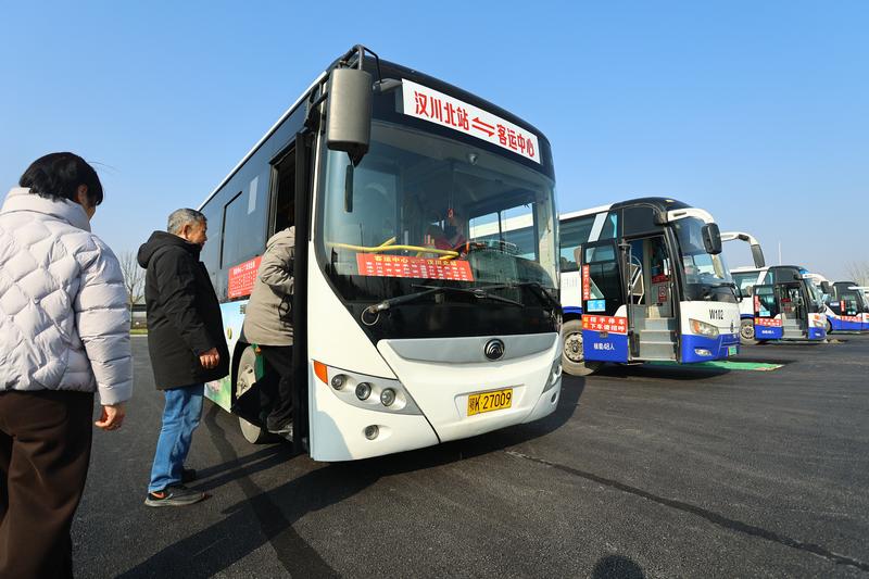 市民有序乘坐汉川北站公交专线(刘家 摄)