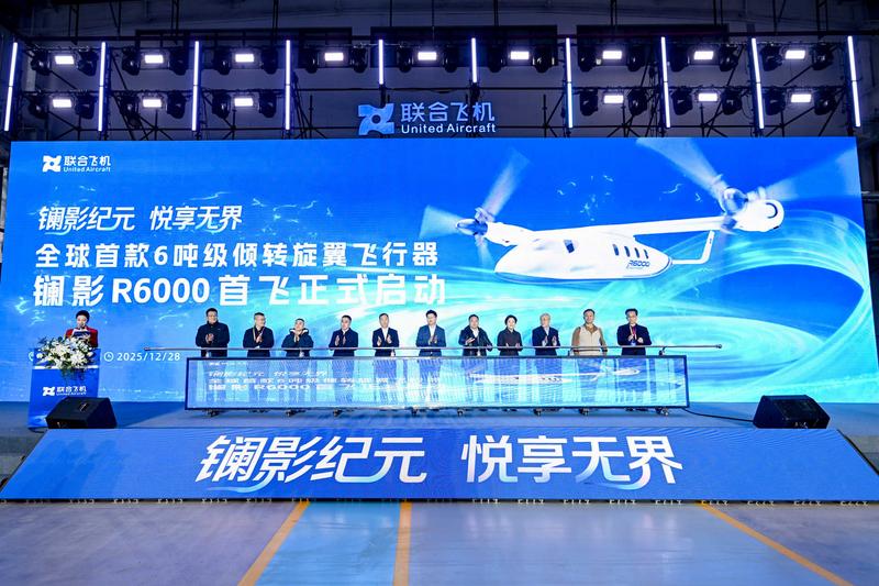 12月28日,由联合飞机集团自主研制的全球首款6吨级倾转旋翼飞行器镧影R6000在四川省德阳市圆满完成了首次飞行。