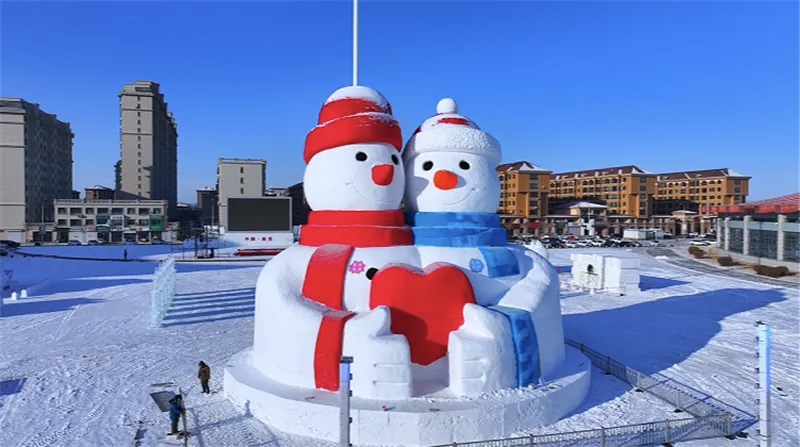 集贤县七星广场雪人雕塑(雷琳 摄)