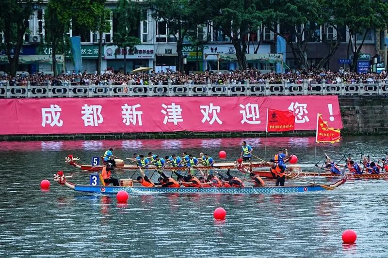 短短两天赛事,吸引了49.25万人次游客涌入新津,而在4个月前的端午节,新津天府端午龙舟会同样吸引了41.58万人次游客,两次赛事,带来了超10亿元的旅游收入。