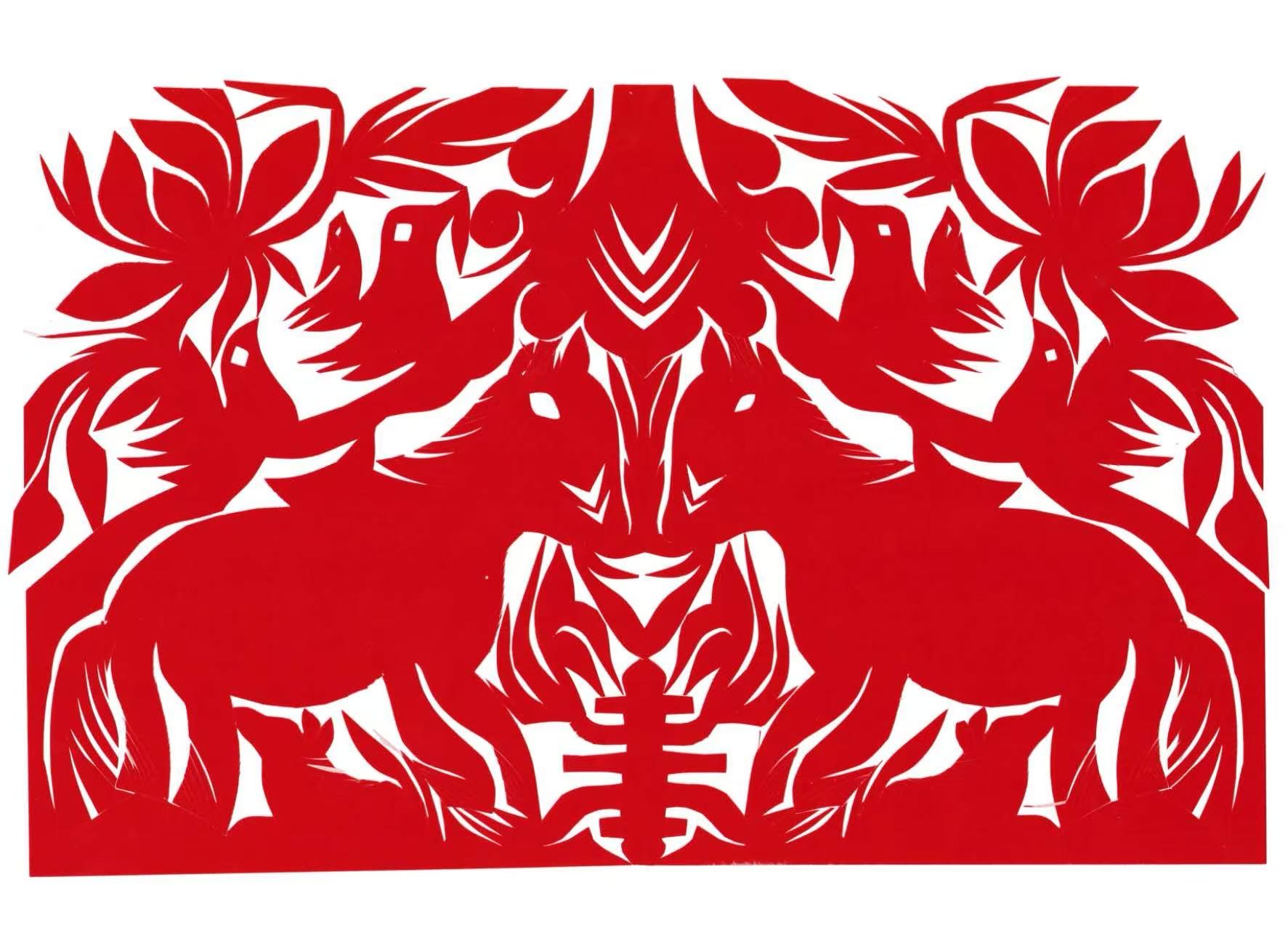 其中,中国剪纸(和林格尔剪纸)国家级代表性传承人、著名剪纸艺术大师段建珺创作的《马跃春芳》《马踏芳踪》《马驭春风》三幅作品是以蒙古马为主体造型表达的“蒙古马三部曲”系列作品,也是此系列作品首次面世展出。作品采用千年传统剪纸绝技“冒铰”的表现形式,表达了蒙古马充满无限生命活力的剪纸艺术之美和段建珺剪纸独特的浪漫简约的大美气质,是马造型文化表达中的精品之作;除此,康枝儿剪纸《黄河人家》《倒烧酒》通过对生活在黄河几字弯区域的农耕人家温馨的典型生活小场景的细致生动捕捉,再现了充满人间烟火的塞外民俗风情,体现出剪纸大师别出心裁的审美创意和表达风范;和林格尔剪纸另外一位重要代表性传承人王枝女大师新创作的剪纸《丰年》《花果山》,通过对家乡“好物”的深情表达,采用极简的剪纸审美讴歌了对故园热土的热爱和对人类生命的赞誉,具有强烈的视觉冲击力。