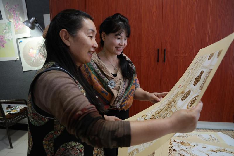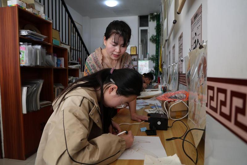 吴金莲在指导赵思琪烙画(杨贵强 摄)